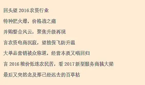 趨勢(shì)不可逆,農(nóng)資企業(yè)或者經(jīng)銷商聚焦的步伐還在加快,相信2017年,2018年農(nóng)資行業(yè)會(huì)迎來“聚焦”的井噴期。